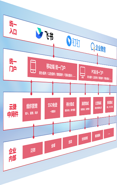 对协作平台提供支持服务,,支持企业应用与协作平台对接,,,包含组织同步、、、消息集成、、待办集成等。。。。支持目前主流的协作平台:钉钉、、、、企微和飞书。。。